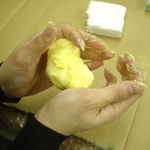 ひたすら、こねこねして、色を混ぜ込んでいきます。手に黄色がついてしまいますので、あしからず。