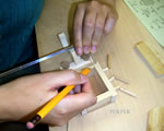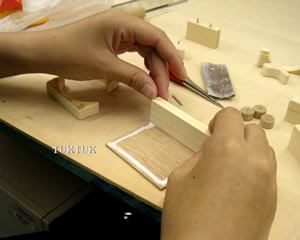 それでは、やっと胴体に取りかかります。ベニア板にボンドを塗って、くっつけていきます。