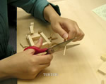 丸串を“適度な”長さに切ります。どこかに飛んでいかないように、注意してくださいね。