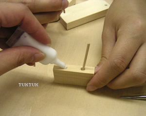 丸串を固定するべく、穴にボンドを注入!
