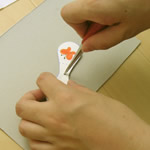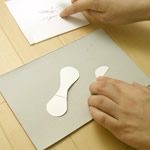 はねの両側と、中央に、切り取ったパーツをはりつけます。
