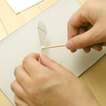 竹串にあらかじめ少しボンドをつけておき、穴に通します。