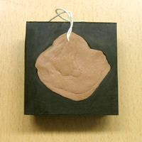 はじめに、ひもを粘土の中に埋もれさせておきます。