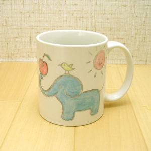 上のカップは、絵付けを二度に分け、丁寧に作業したため、2~3時間くらいかかっています。今回、輪郭線と中の色が混じらないように、絵付け、焼き付けを二回に分けましたが、もちろん一回で焼き付けてしまっても構いません。