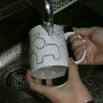 ちなみに、焼き付けをせずに長時間置いておいても、カップに色はつきません。水で流せば、ほとんど落ちてしまいます。かならず熱湯で焼き付けてから使い始めるようにしてくださいね。