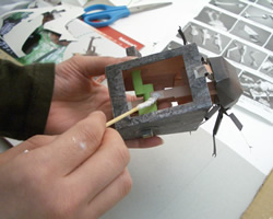 クランク部分と主軸が固定できたら、今度はカブトムシのおしりと土台を貼りあわせます。